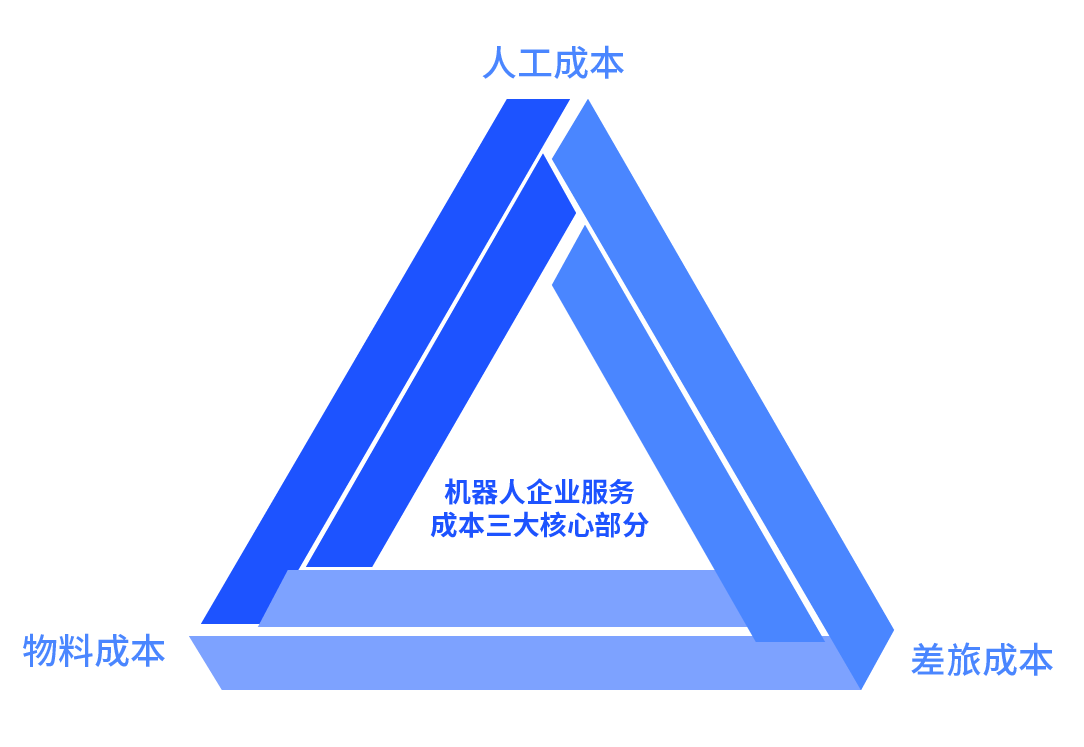 控成本 明晰成本构成,找对优化方向 明晰成本构成,是实现成本合理控制的第一步。 从行业共性来看,物料、差旅、人工是服务成本的三大核心组成部分。针对大型机器人设备,还会产生物流打包运输、售后维保、远程运维等支出。 针对不同成本构成,机器人企业需采取差异化的优化策略。